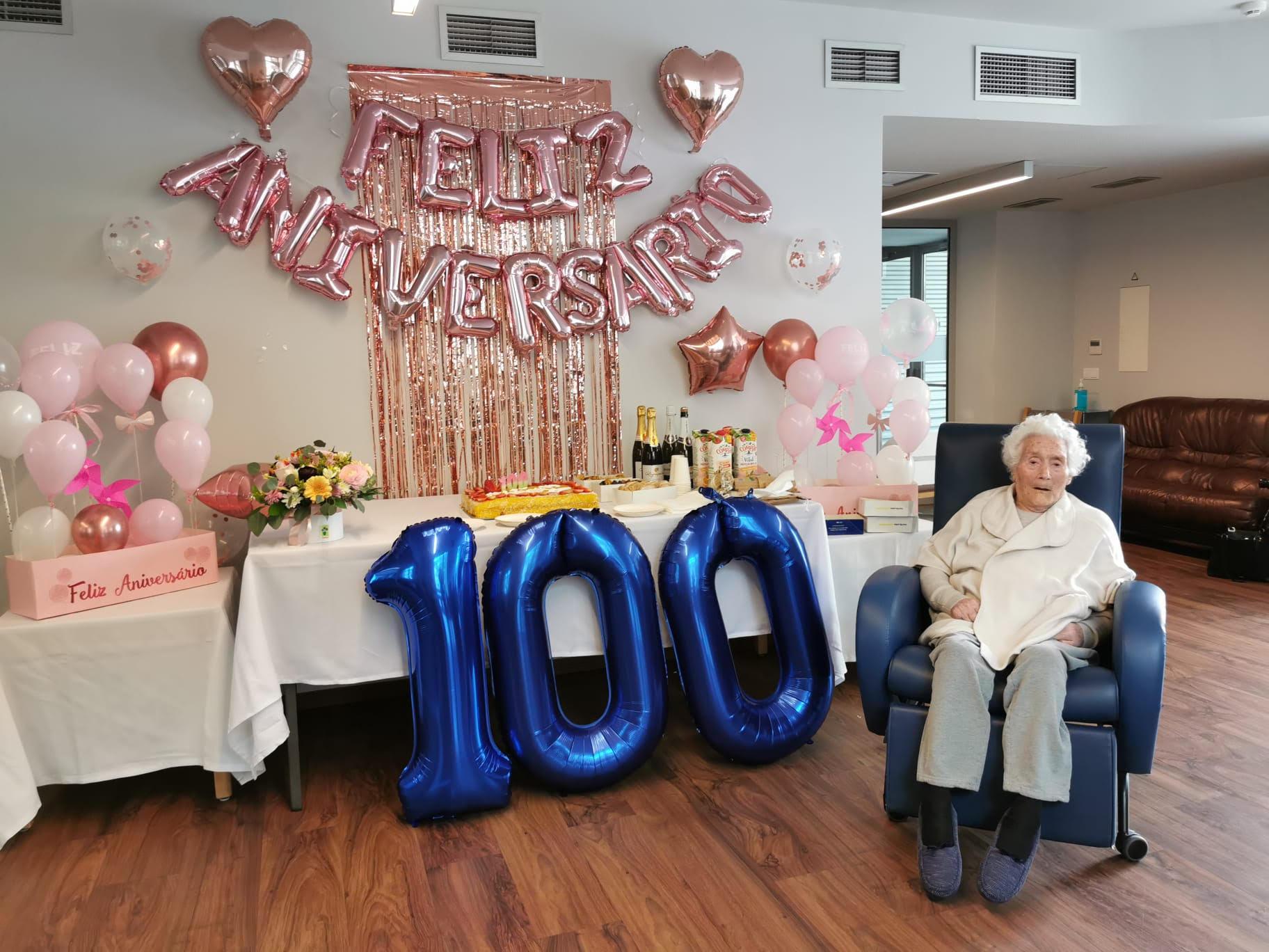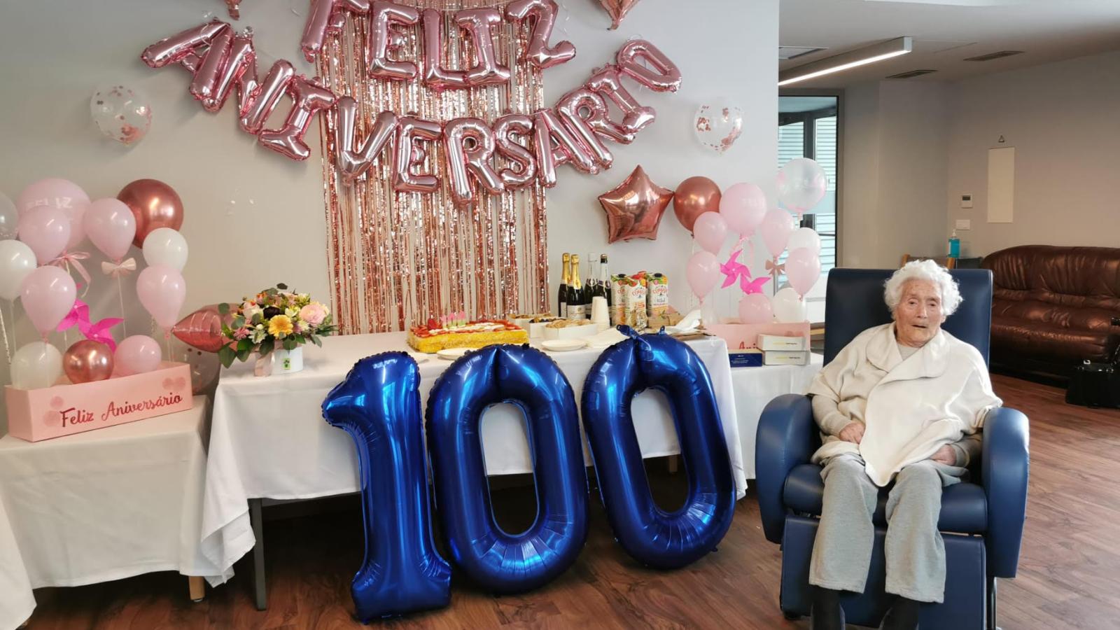 Teresa de Jesus Aguiar, utente do Centro Social da Paróquia de S. Lázaro (ERPI - Estrutura Residencial para Pessoas Idosas) comemora hoje o seu centésimo aniversário.
