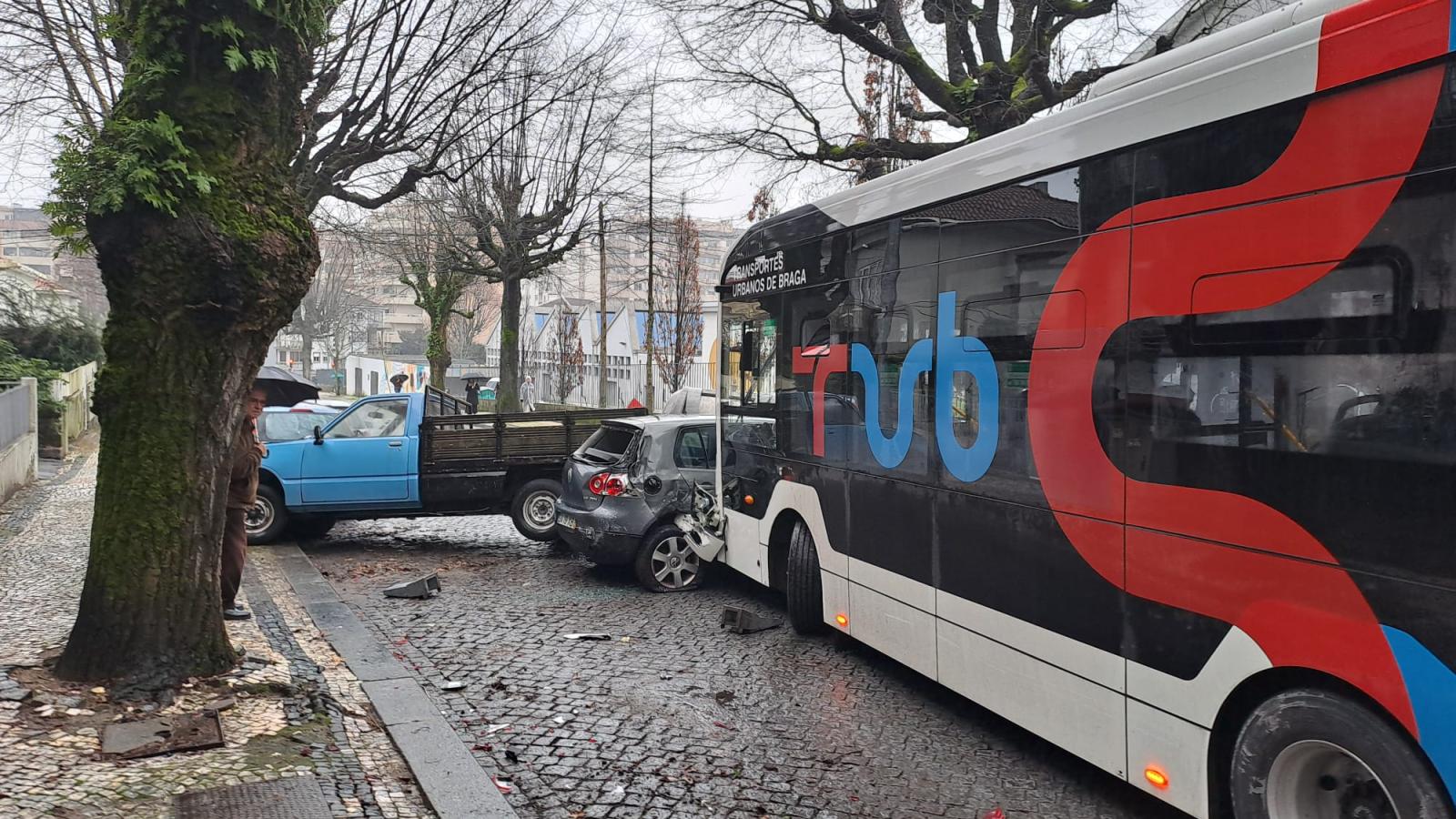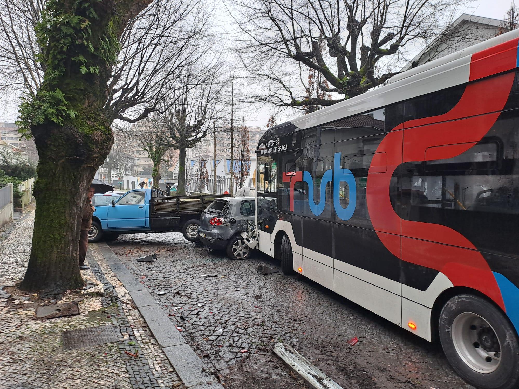 O despiste de um autocarro junto à Escola Secundária de Carlos Amarante, na tarde desta segunda-feira, provocou um ferido ligeiro e um forte aparato no local por envolver vários veículos e um contentor do lixo.