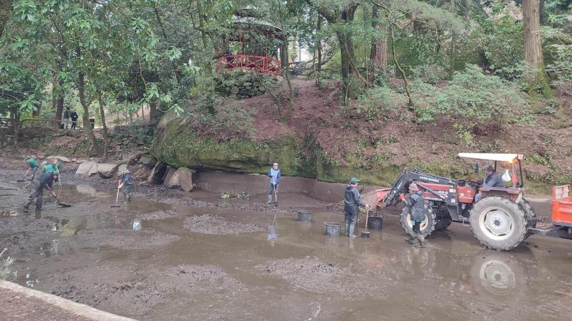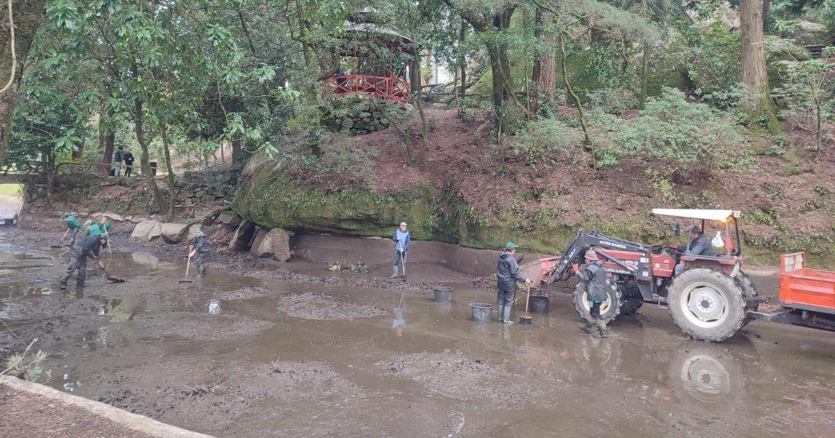 Os trabalhos de manutenção, limpeza e reparação do Lago do Bom Jesus do Monte fazem-se de forma periódica para antecipar a grande afluência de visitantes no verão.