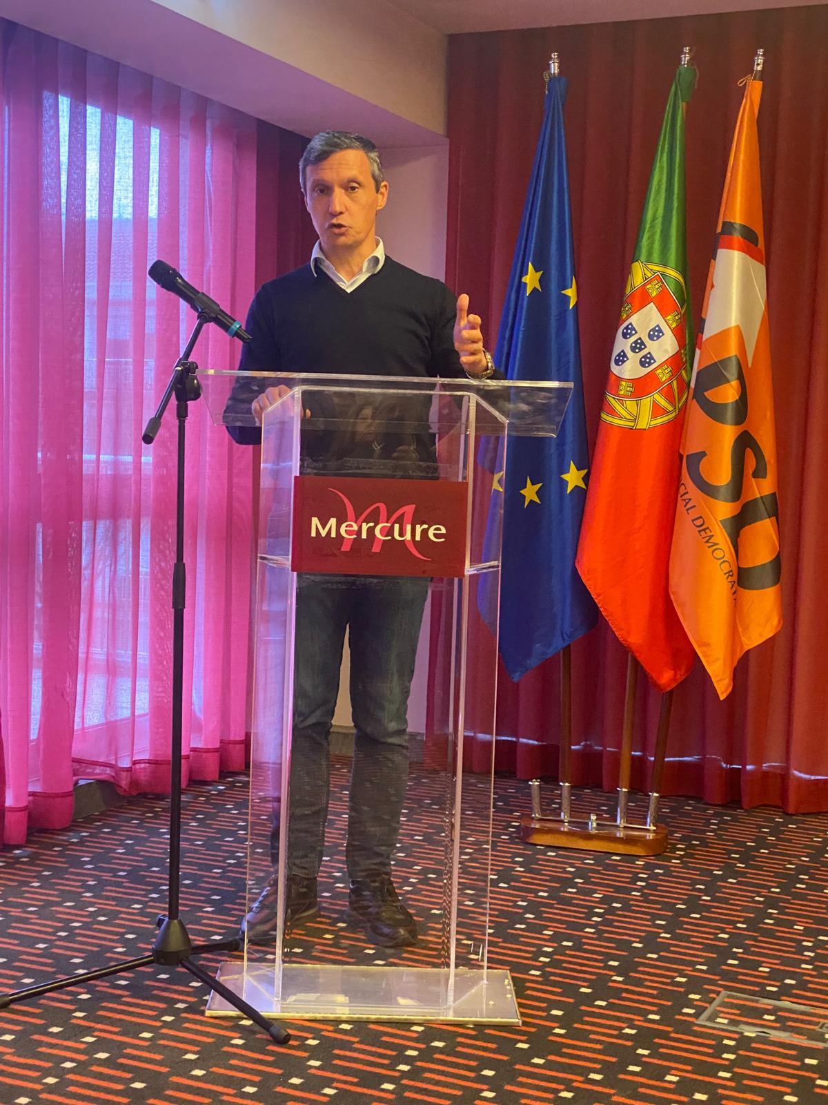 «Quando a União Europeia cerra fileiras na defesa do seu mercado comum, na criação de um projeto de defesa conjunto e de condições para que se proteja o modelo democrático de governo, a sua matriz de proteção ambiental, condição essencial à proteção de gerações vindouras, assim como estimula o seu projeto económico eis que em Portugal os partidos da oposição, nomeadamente o Partido Socialista, persistem de costas voltadas para os interesses das pessoas e optam pelo simples confronto político de consequências imprevisíveis», afirmou.