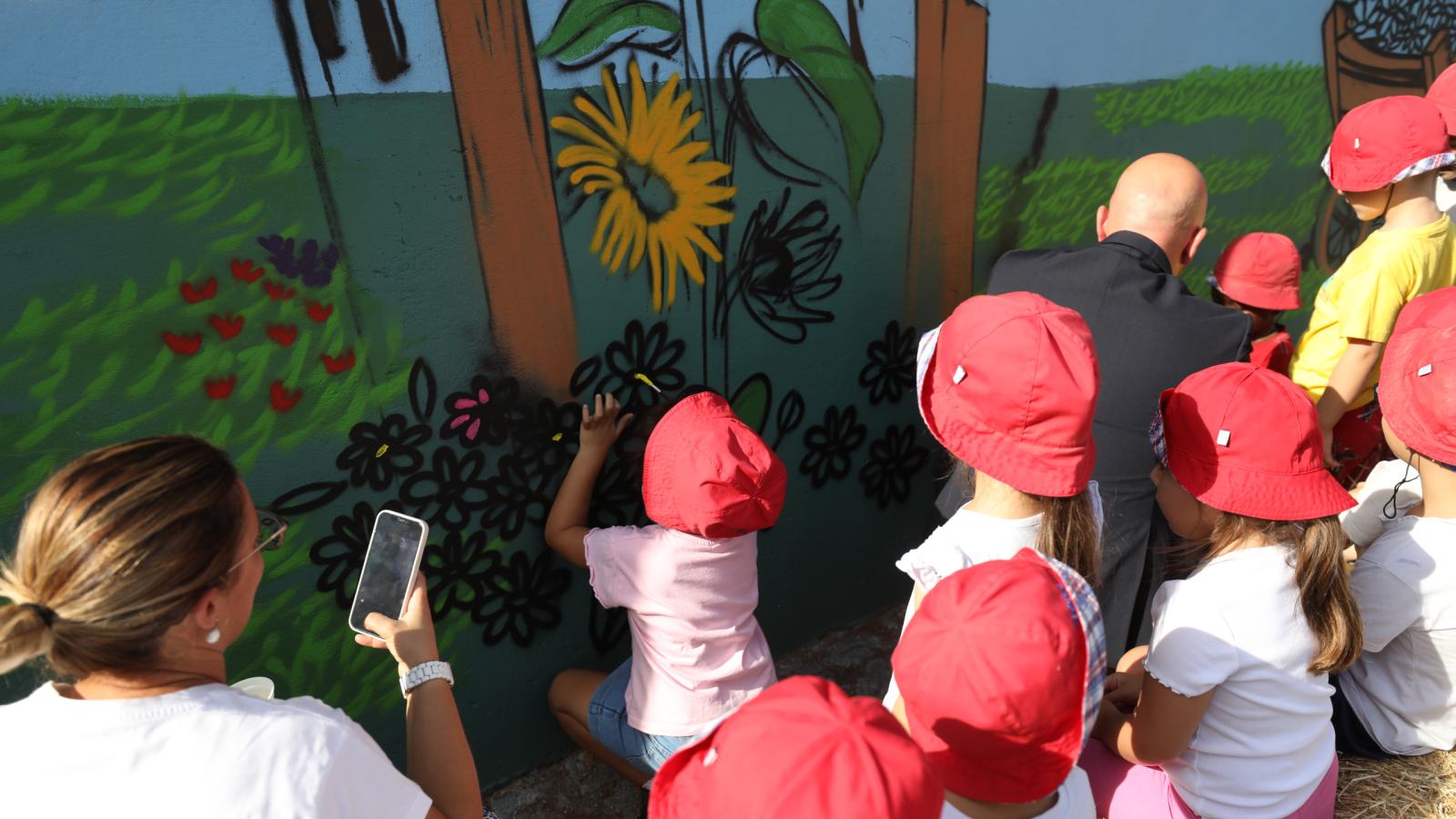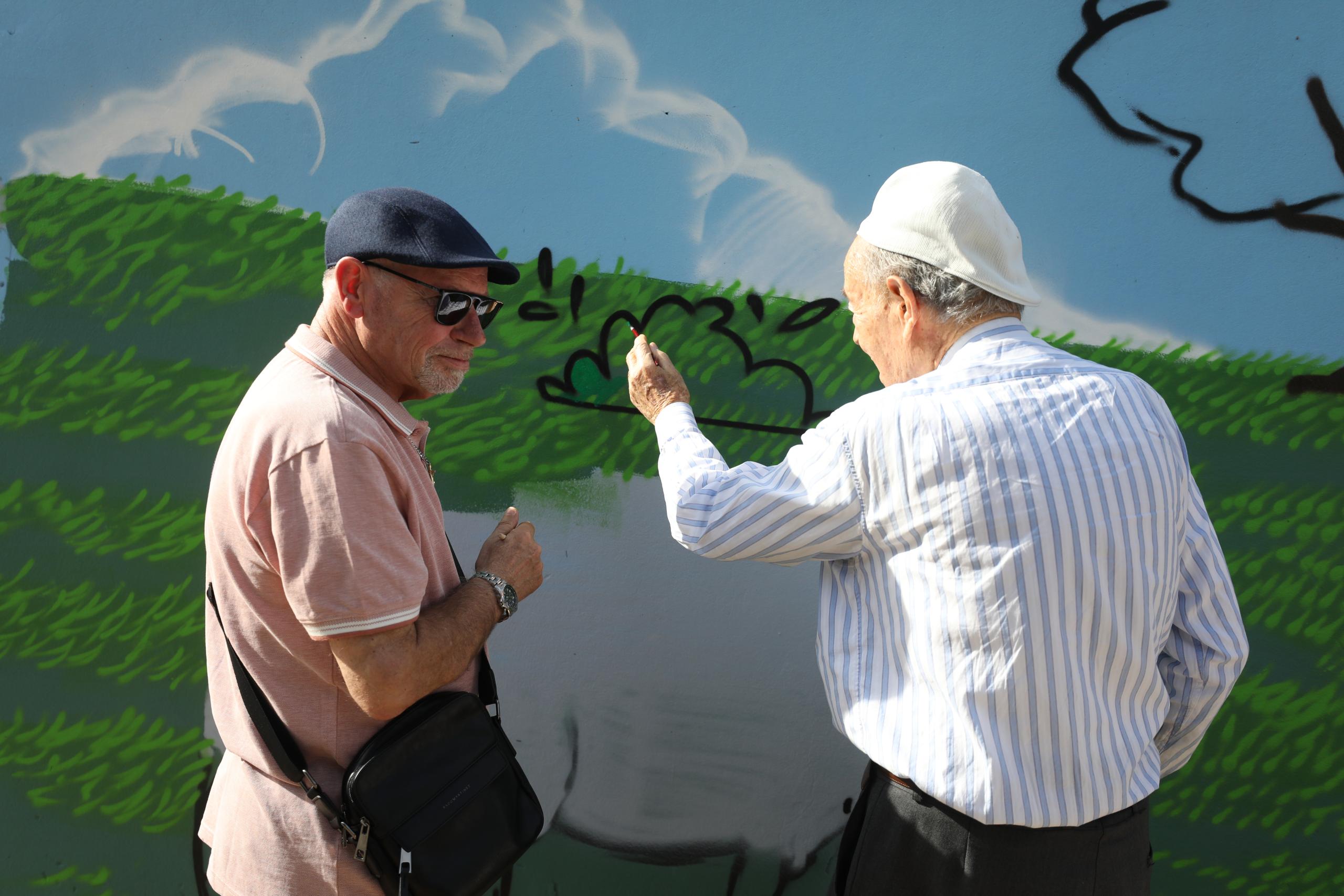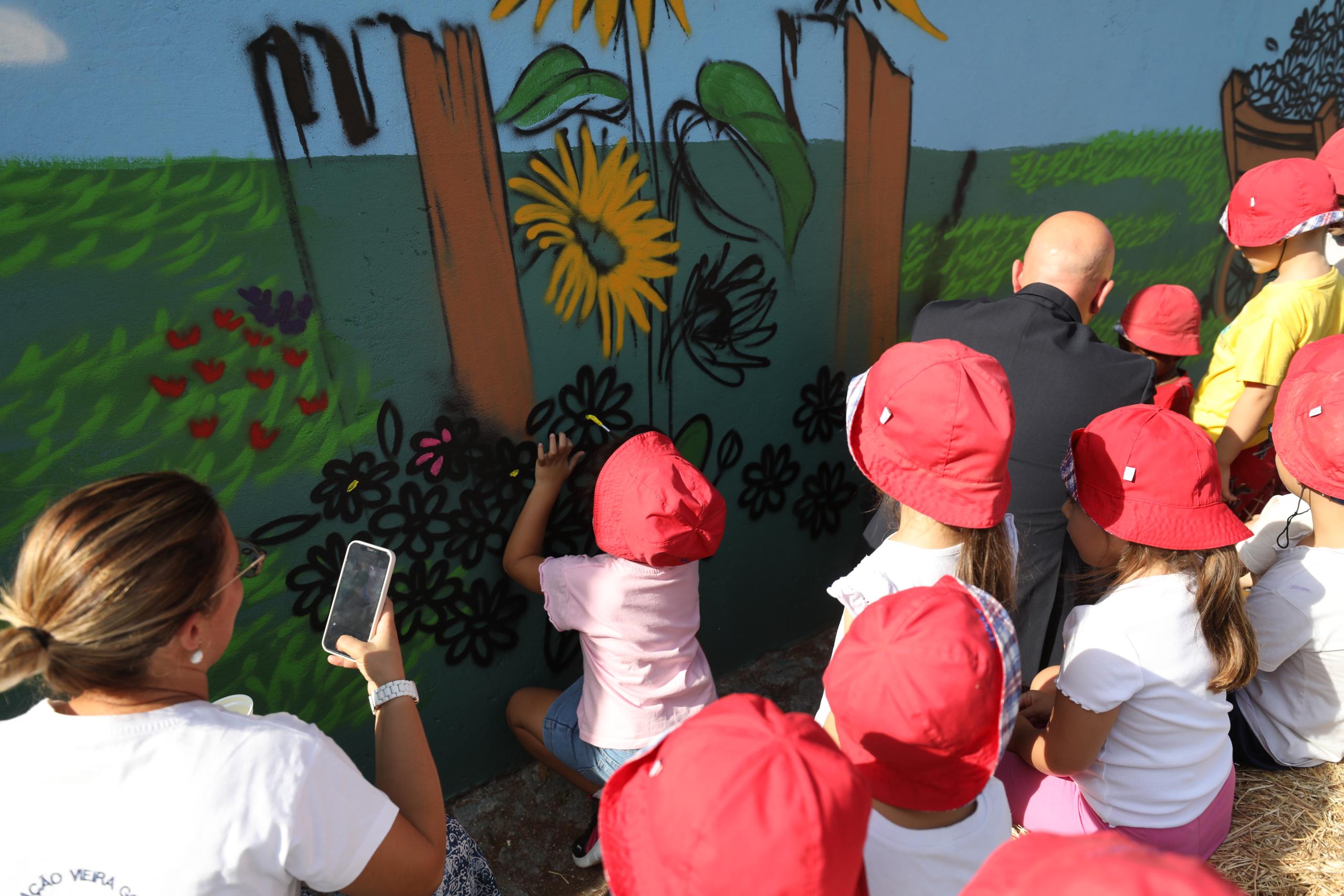 O muro da Quinta Pedagógica de Braga ganhou uma nova cor, servindo agora de espelho de toda a ruralidade que ali se respira. A obra é de Nuno Mendes (Silkarte), que há uma semana se vem dedicando ao projeto, e foi ontem complementada pelas mãos de convidados especiais, nomeadamente crianças do Centro Escolar de S. Frutuoso, Fundação Vieira Gomes e EB1 de Real, utentes da CERCI e idosos da Casa do Areal.