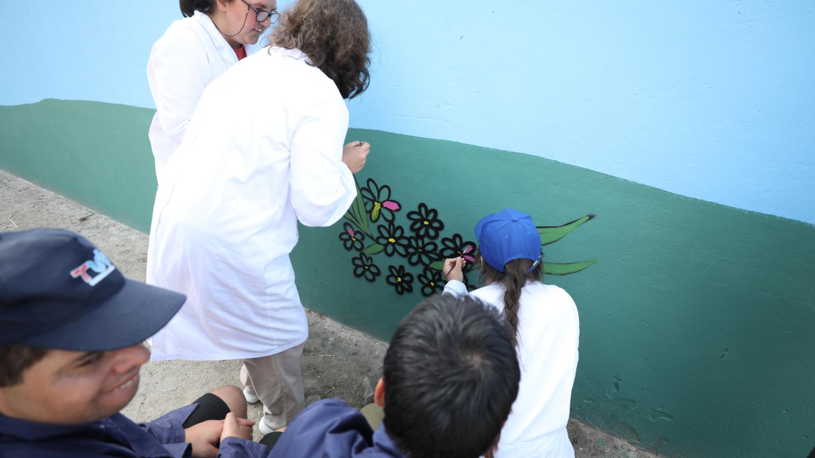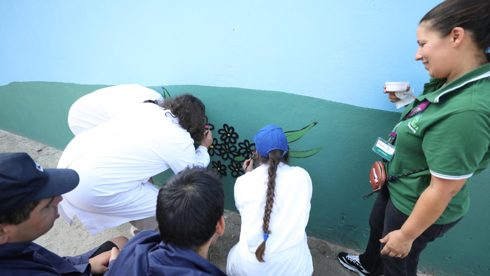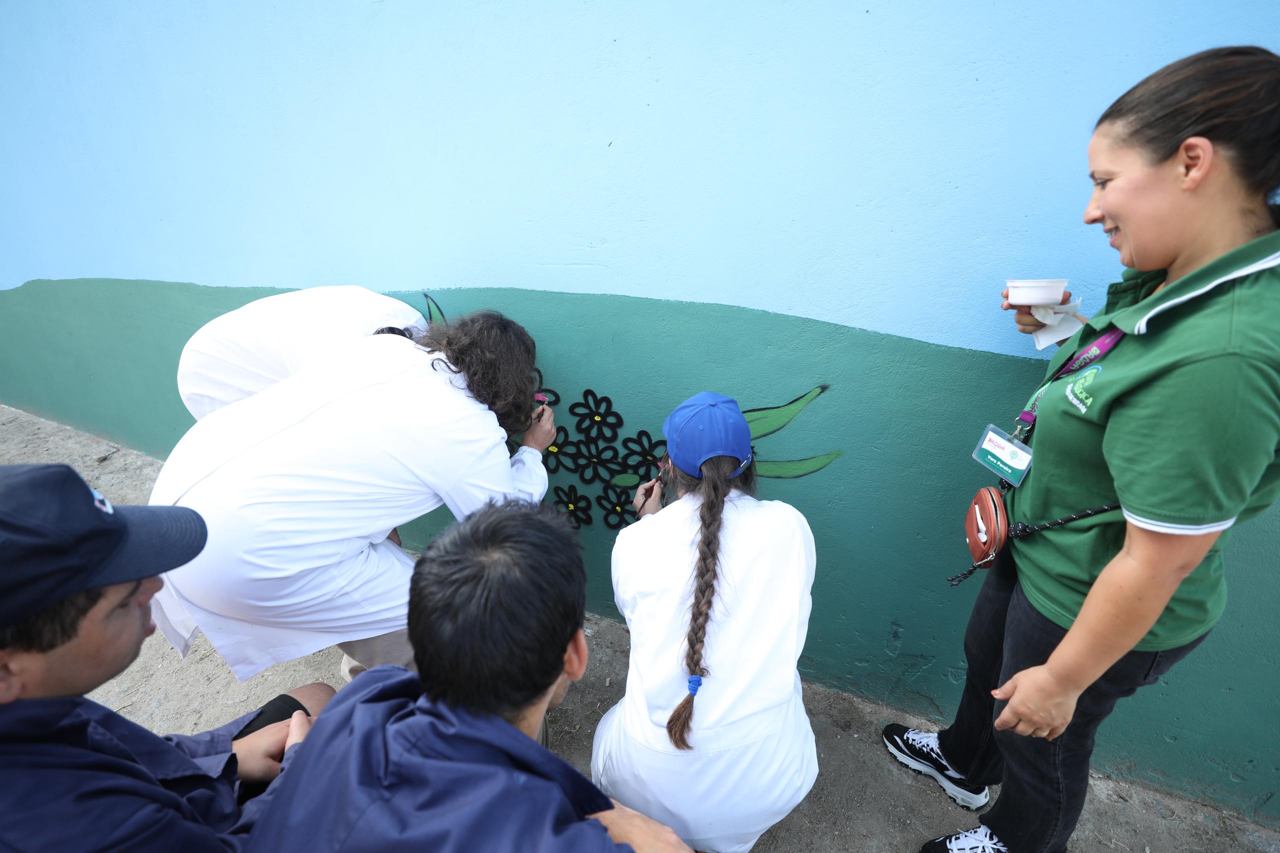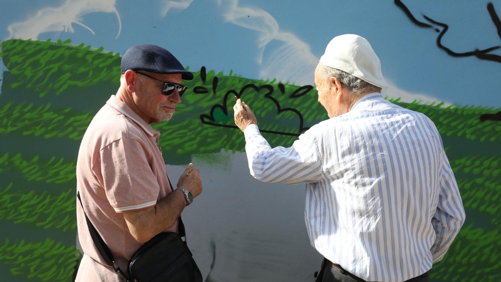 O muro da Quinta Pedagógica de Braga ganhou uma nova cor, servindo agora de espelho de toda a ruralidade que ali se respira. A obra é de Nuno Mendes (Silkarte), que há uma semana se vem dedicando ao projeto, e foi ontem complementada pelas mãos de convidados especiais, nomeadamente crianças do Centro Escolar de S. Frutuoso, Fundação Vieira Gomes e EB1 de Real, utentes da CERCI e idosos da Casa do Areal.