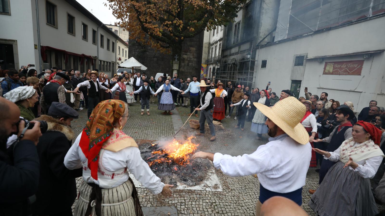 Ao ritmo de danças espontâneas e cantares tradicionais à volta da fogueira, realizou-se hoje o magusto popular “A Rusga desce ao Terreiro”, uma iniciativa da Rusga de S. Vicente de Braga – Grupo Etnográfico do Baixo Minho, que juntou dezenas de rusgueiros, amigos e muitos transeuntes junto à Torre de Menagem, em pleno centro histórico de Braga.