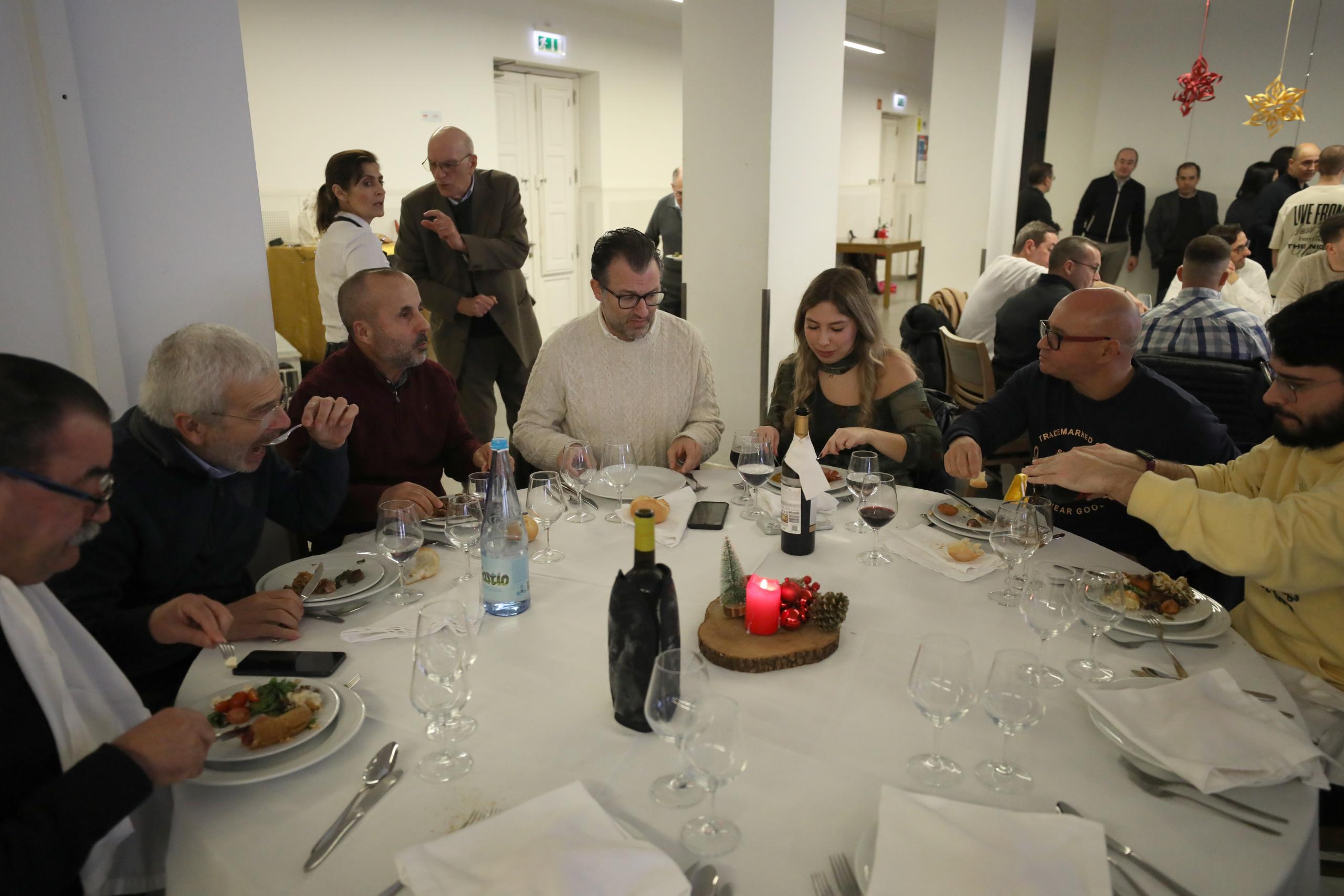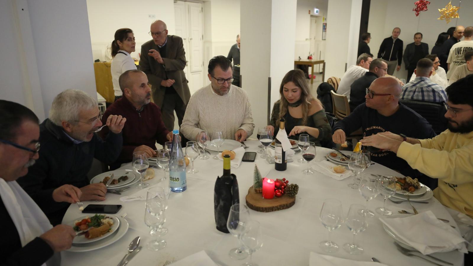 O tradicional almoço de Natal da grande família do Diário do Minho realizou-se nas instalações da Cooperativa João Paulo II e contou com a presença do Arcebispo de Braga, D. José Cordeiro, do Cónego Vitor Novais, do padre Miguel Paulo Simões, ecónomo da Arquidiocese, e do padre Tiago Freitas, administrador do Diário do Minho, entre outros responsáveis, colaboradores e convidados.