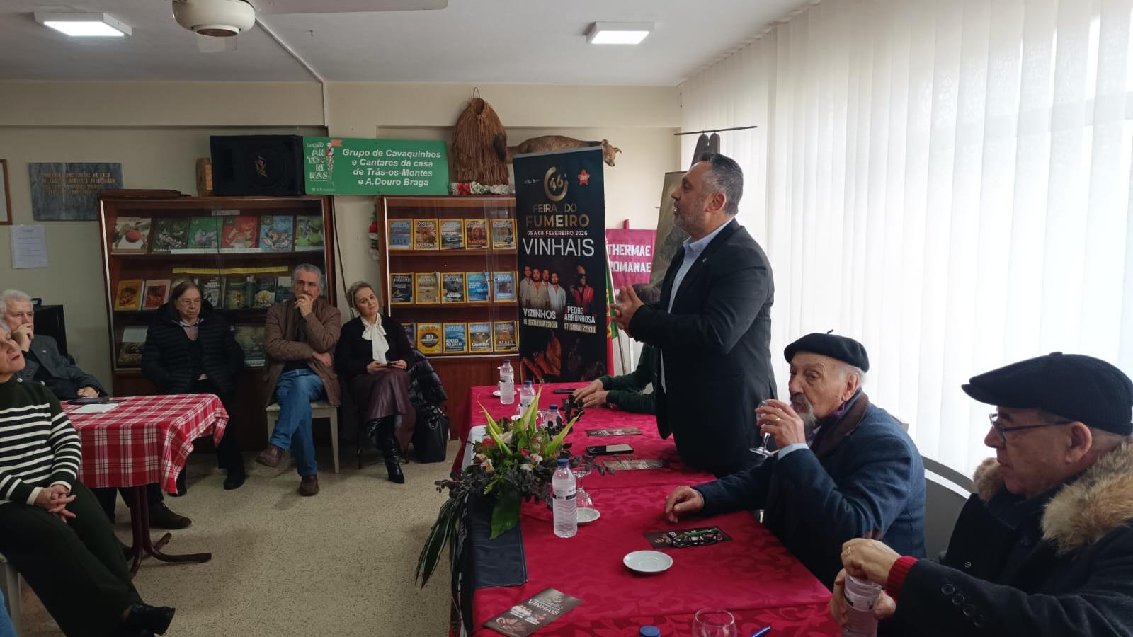 De facto, a Casa de Trás-os-Montes e Alto Douro, em Braga já é uma passagem promoção da Feira do Fumeiro. E hoje, os anfitriões fizeram questão de se esmerar na preparação da festa. A comitiva de Vinhais formada, entre outros, pelo vice-presidente da Câmara de Vinhais, Artur Marques; e o diretor da Feira, Miguel Fernandes, foi recebida pelos associados e as boas-vindas foram dadas com atuação do Grupo de Cavaquinhos e Cantares da Casa de Trás-os-Montes e Alto Douro, em Braga, que interpretou os “Reis de Vinhais”.