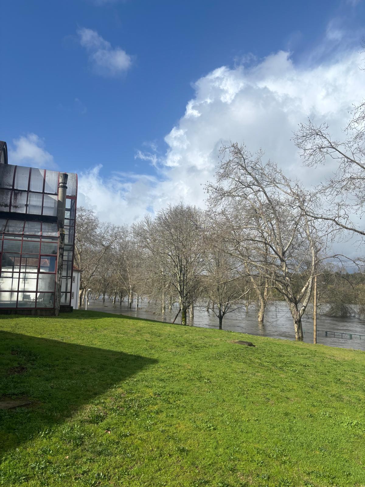 O rio Minho transbordou na madrugada de hoje e chegou ao muro das termas novas de Monção, tendo inundado, entre outras zonas, o parque infantil, o exterior da piscina municipal e o estacionamento do parque das Caldas.