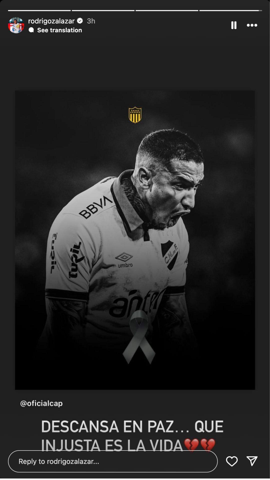 O uruguaio Rodrigo Zalazar, do Sporting de Braga, lamentou nas redes sociais a morte de Juan Izquierdo, futebolista uruguaio que sofreu um ataque cardíaco durante uma partida em São Paulo, no Brasil.