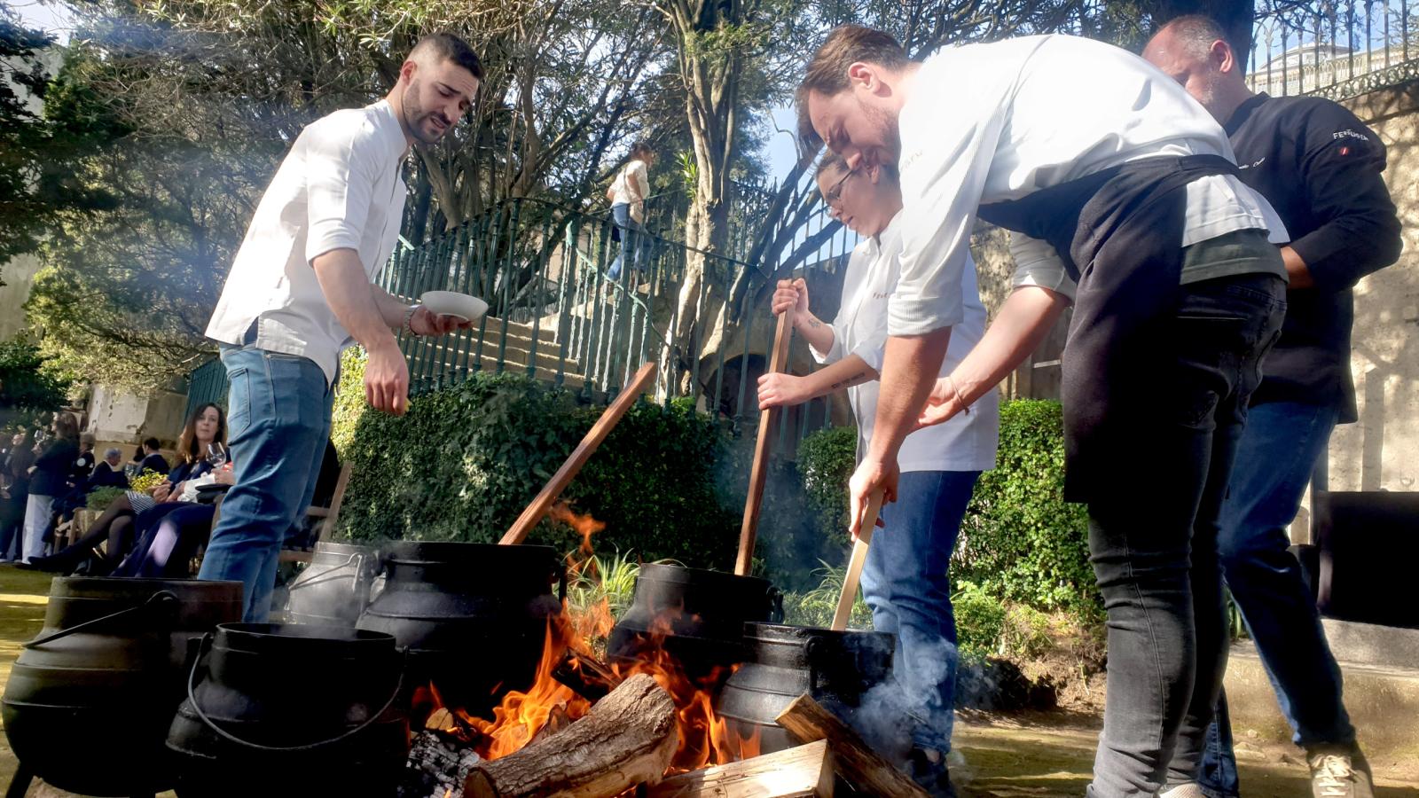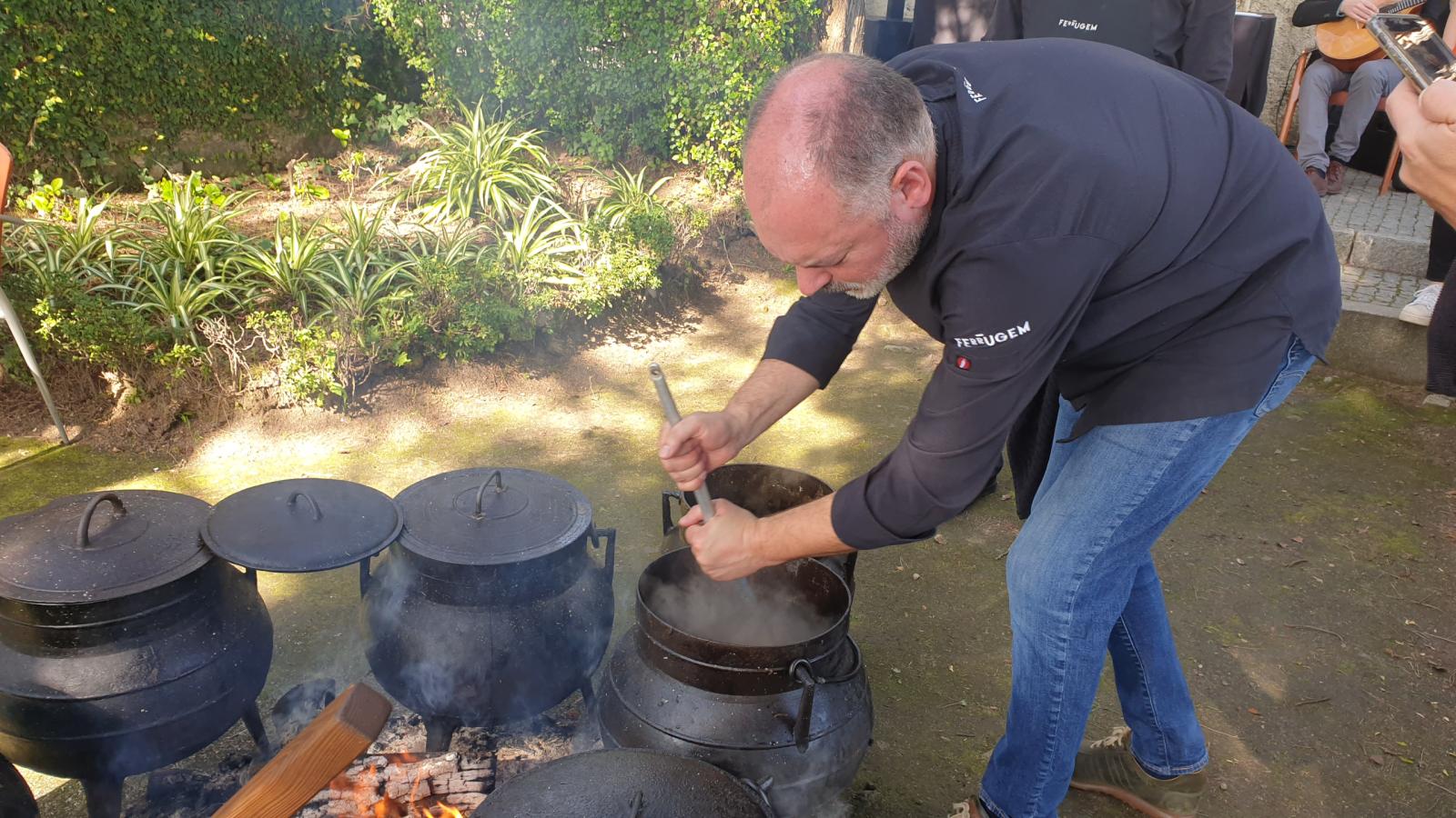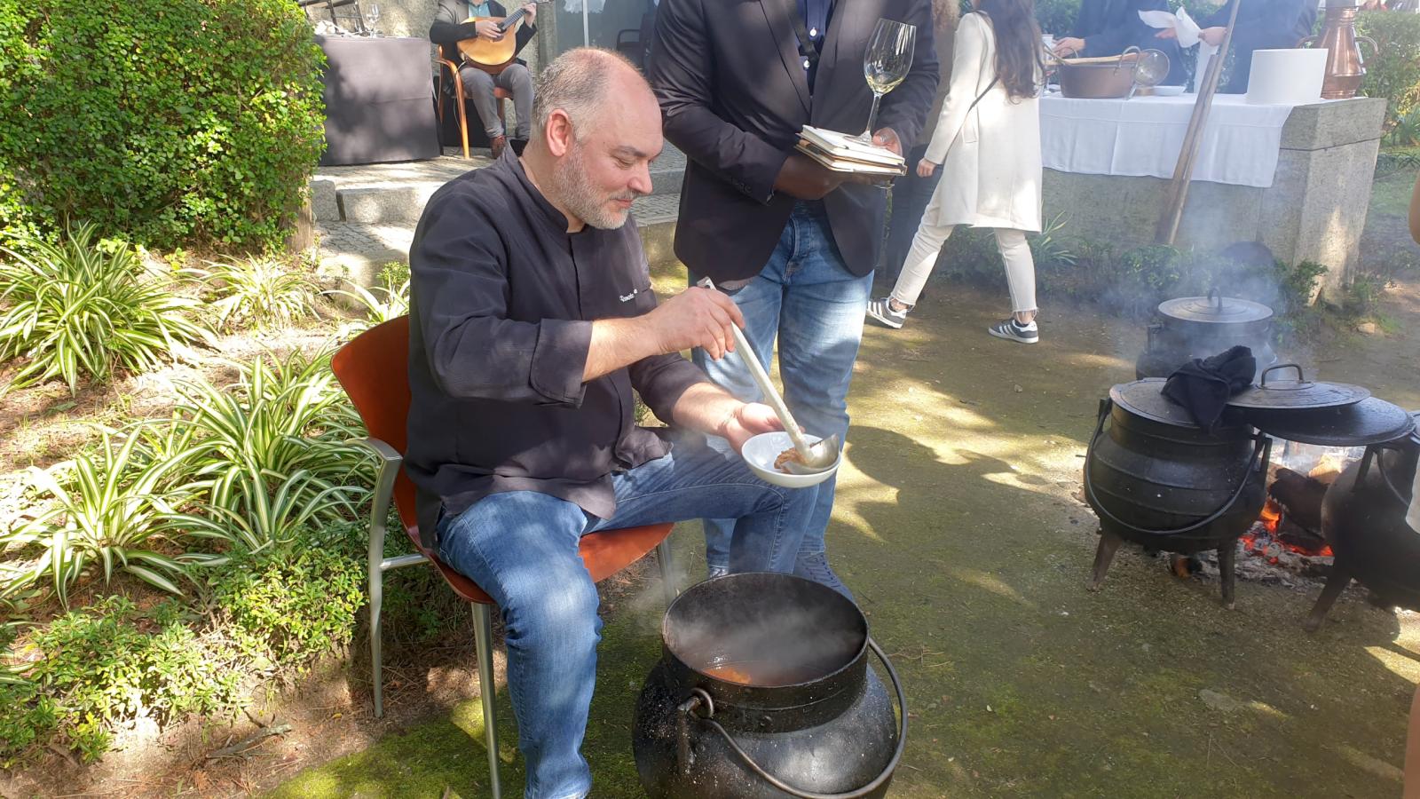 O chefe Renato Cunha, do Ferrugem, de Vila Nova de Famalicão, galardoado recentemente pela Revista de Vinhos como restaurante do ano 2023, cozinhou nos tradicionais potes de ferro, tendo as propostas gastronómicas sido harmonizadas com Vinhos Verdes de 12 produtores.