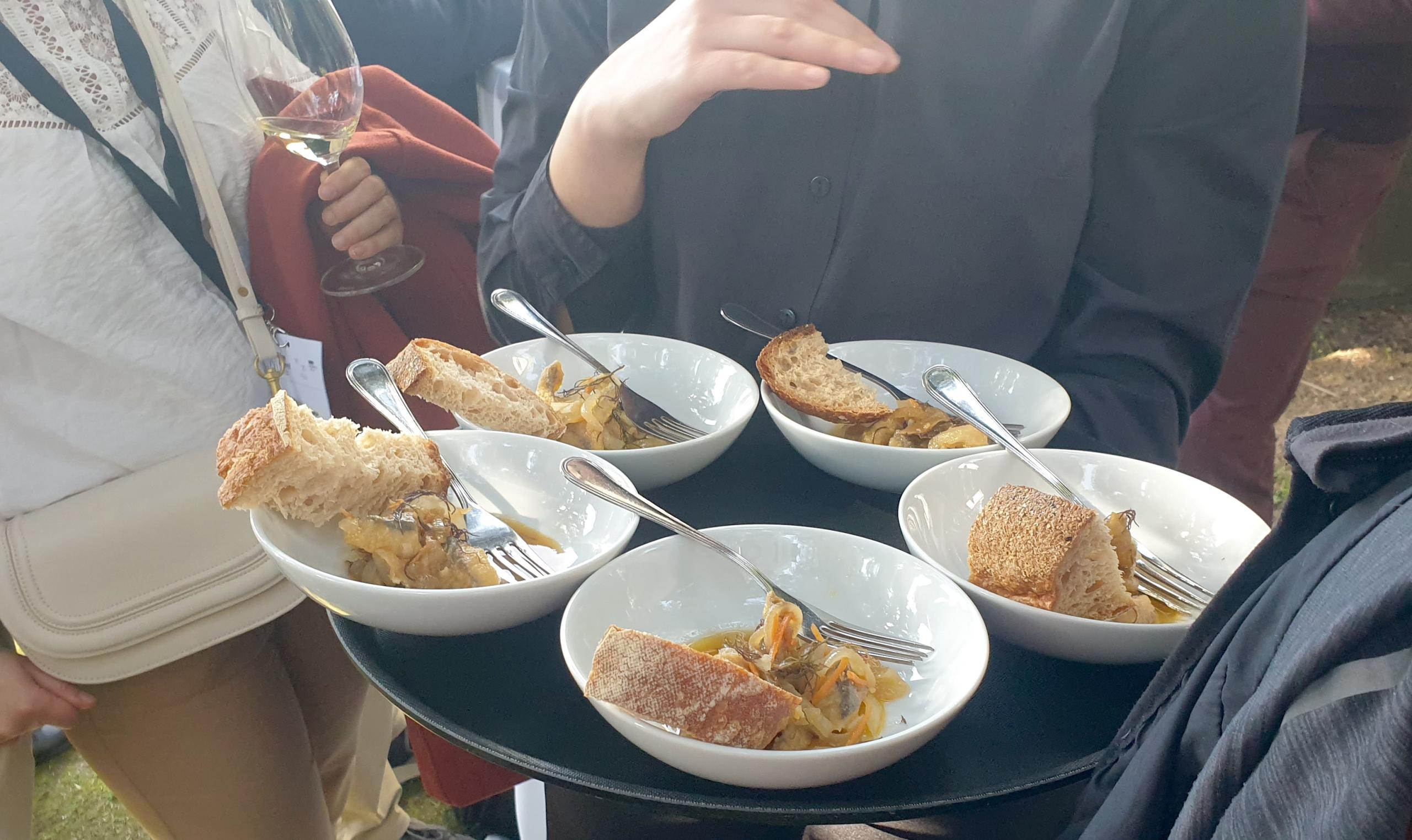 Os convidados foram recebidos com um carapau de escabeche com algas e óleo de camarão da costa, considerando que «é uma excelente iguaria para espumantes da região dos Vinhos Verdes, Vinhos Verdes com maior mineralidade».
