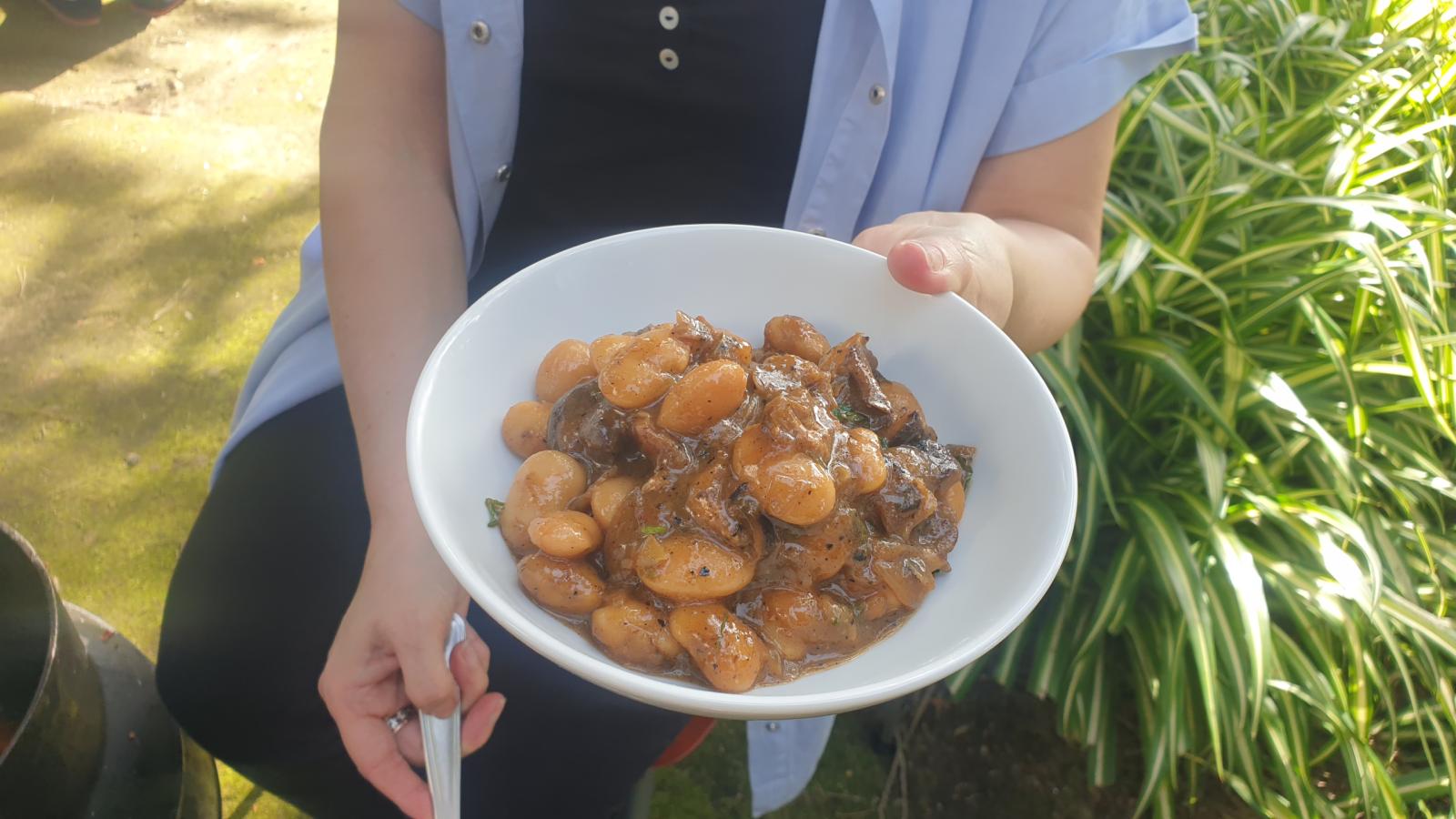 A proposta seguinte foi uma feijoada de cogumelos, com feijocas da horta do restaurante, para ser acompanhada por «brancos da região com estágio em barrica».