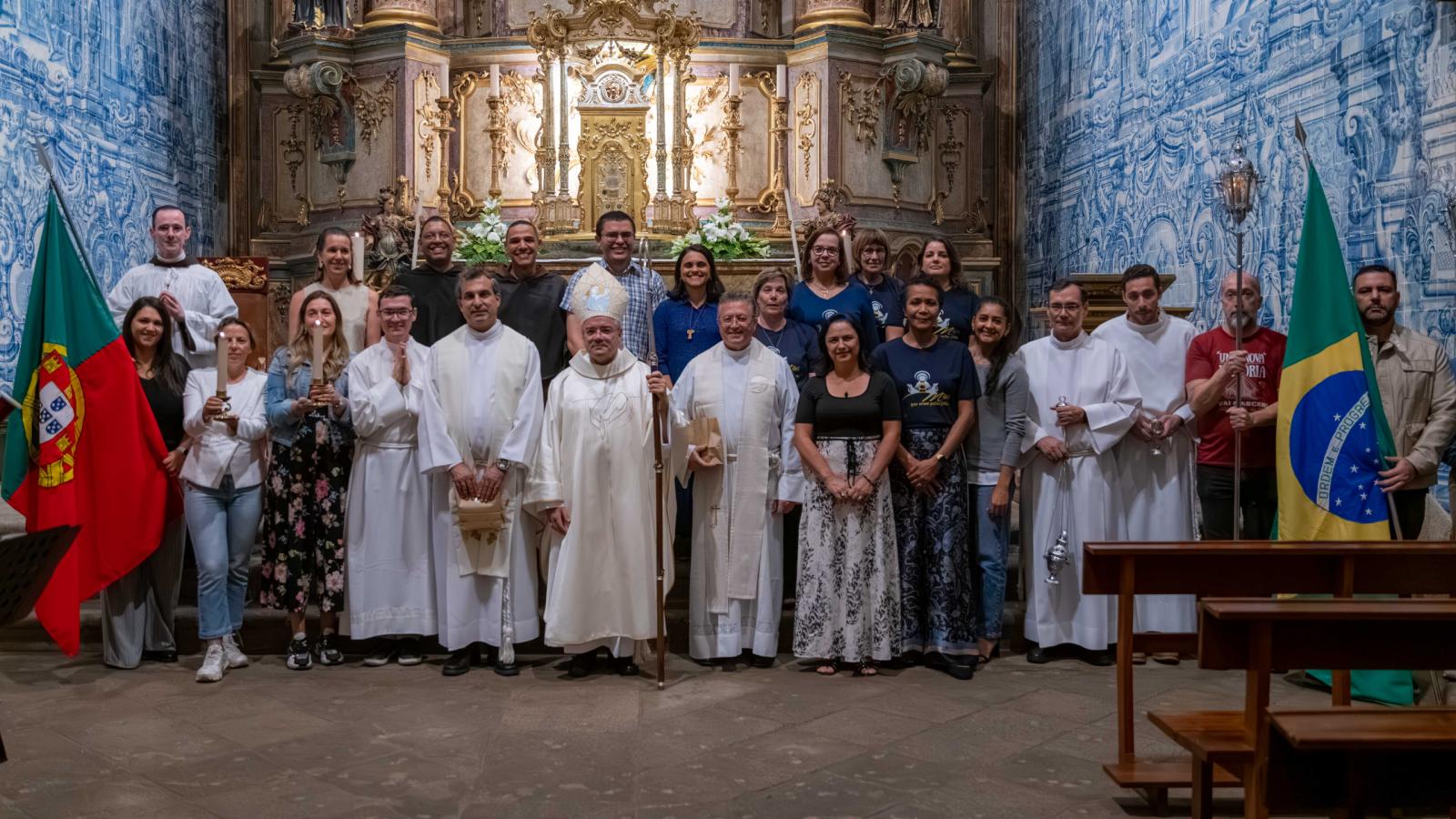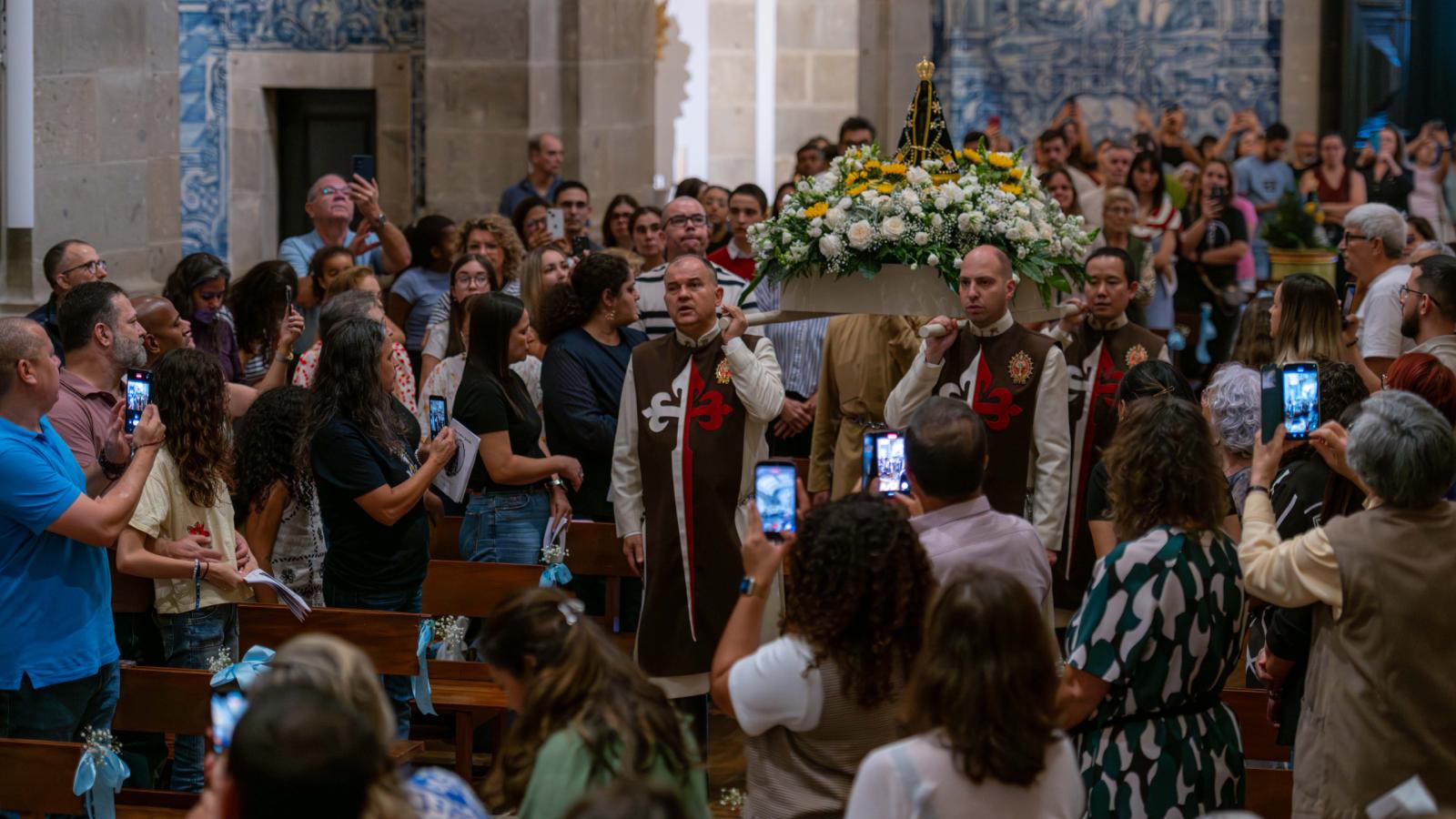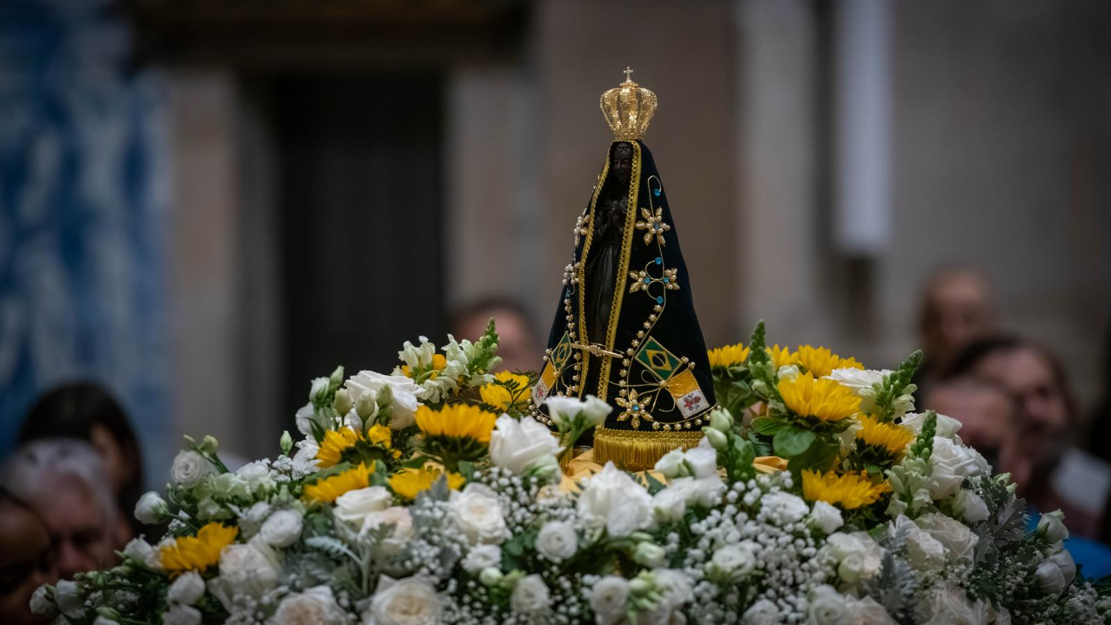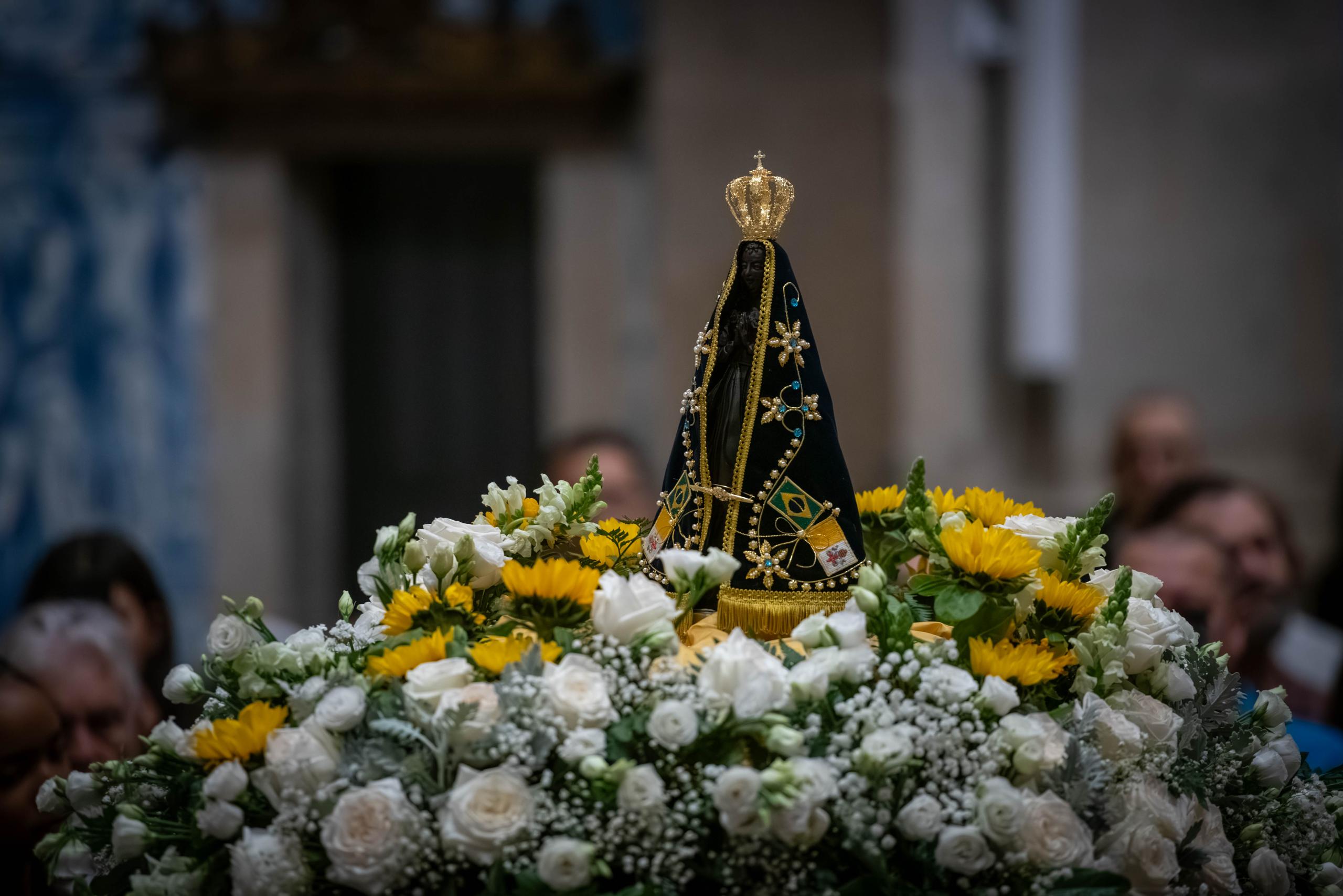 Enviada diretamente do Santuário Nacional no Brasil, esta prenda especial foi entregue na igreja do Pópulo, no centro da cidade de Braga, após a missa celebrada por ocasião da festa em honra da Senhora Aparecida.