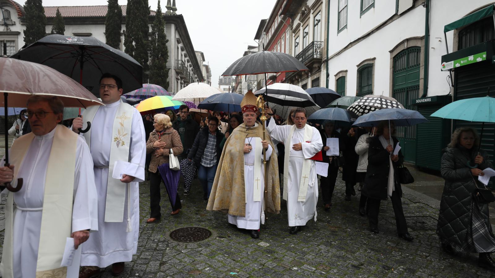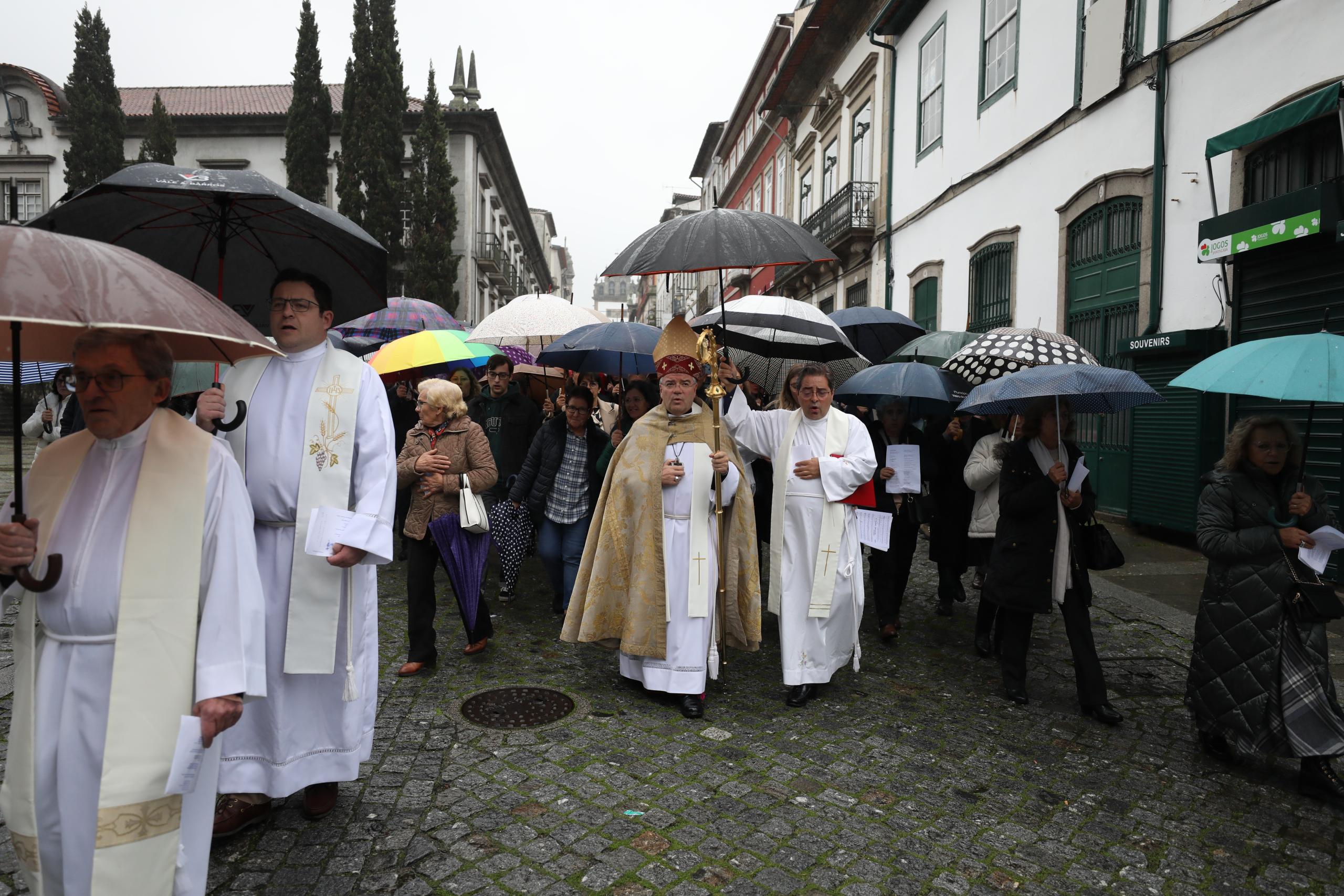 A peregrinação iniciou-se na Igreja de São Paulo com uma oração e a entoação do Hino do Jubileu, ao que se seguiu a procissão até à Sé Catedral, debaixo de chuva, o que não impediu a participação numerosa de fiéis de Vieira do Minho.